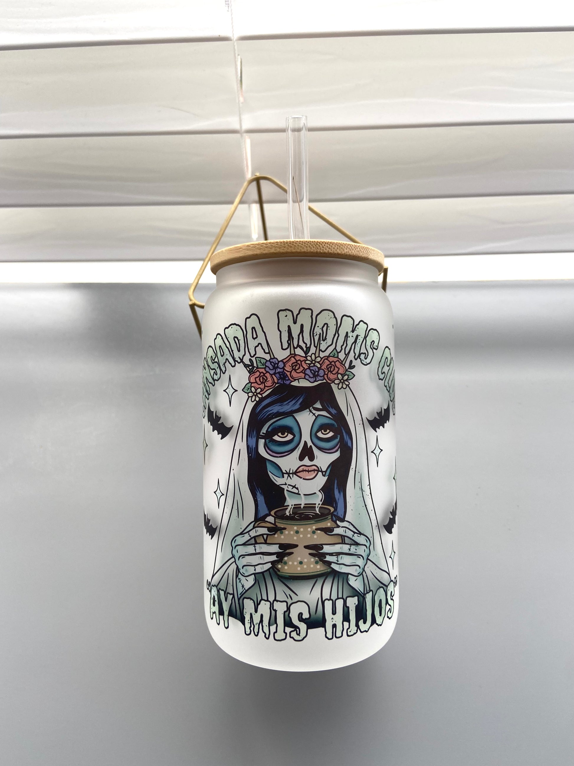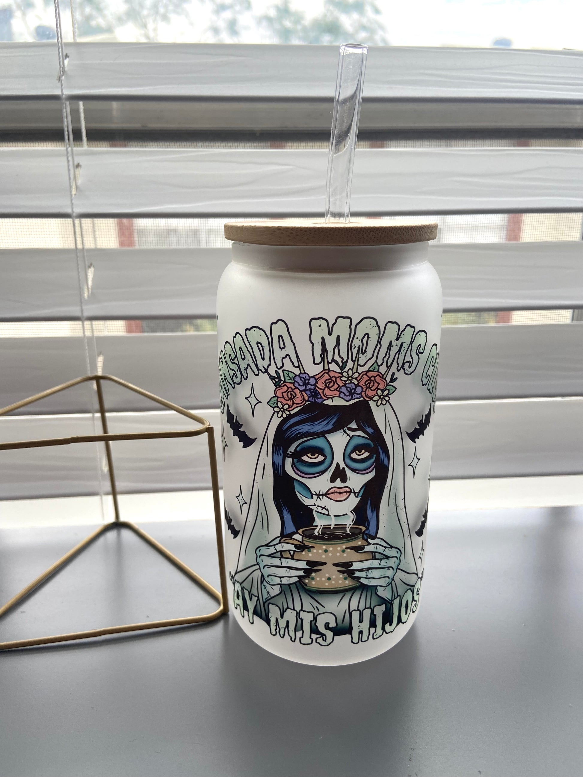 Take a break from mom duties with our Cansada moms club “ay mis hijos” cup! This frosted glass cup comes with a lid and straw so you can enjoy your favorite drink without any spills. Perfect for tired moms who need a little pick-me-up. Sip, relax, and say "ay mis hijos!"